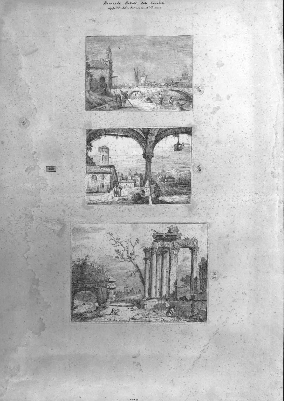 - ISCRIZIONI in alto al centro - Bernardo Bellotti, detto Canaletto/ nipote del celebre Antonio Canal Veneziano - corsivo - a penna -