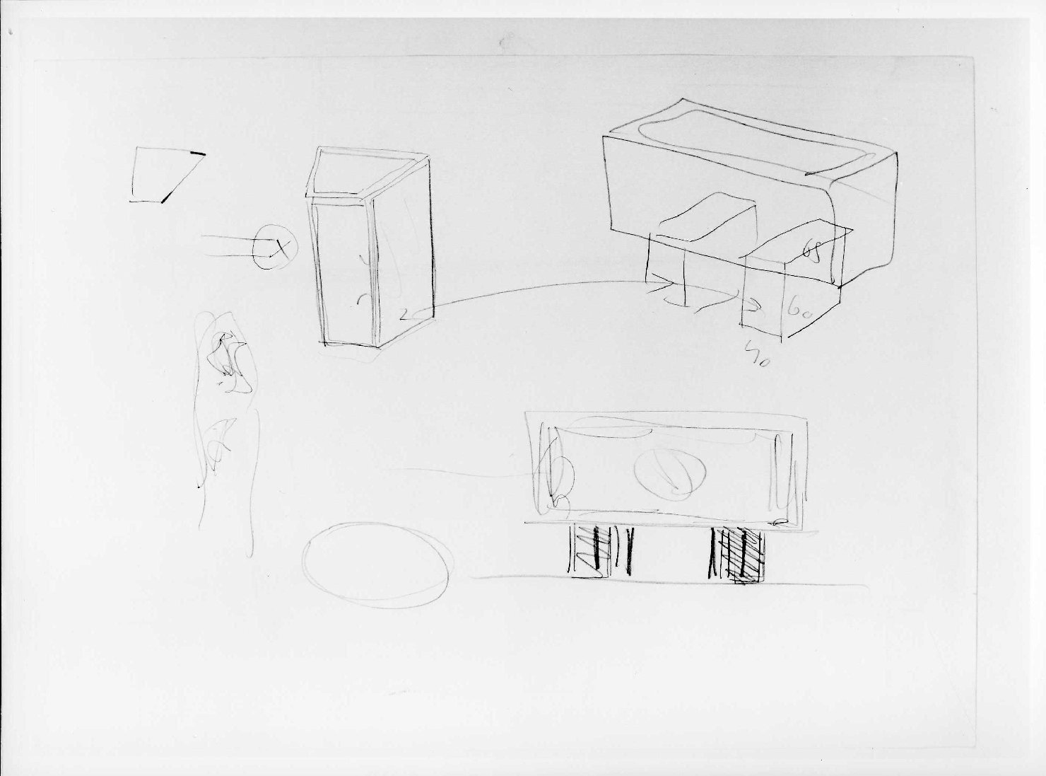 Schizzi per il supporto di un sarcofago e dello "Svenimento della Vergine" nella sala 4 della Galleria delle Sculture. Sul recto è presente un'altra figurazione (si veda la scheda 00321973)