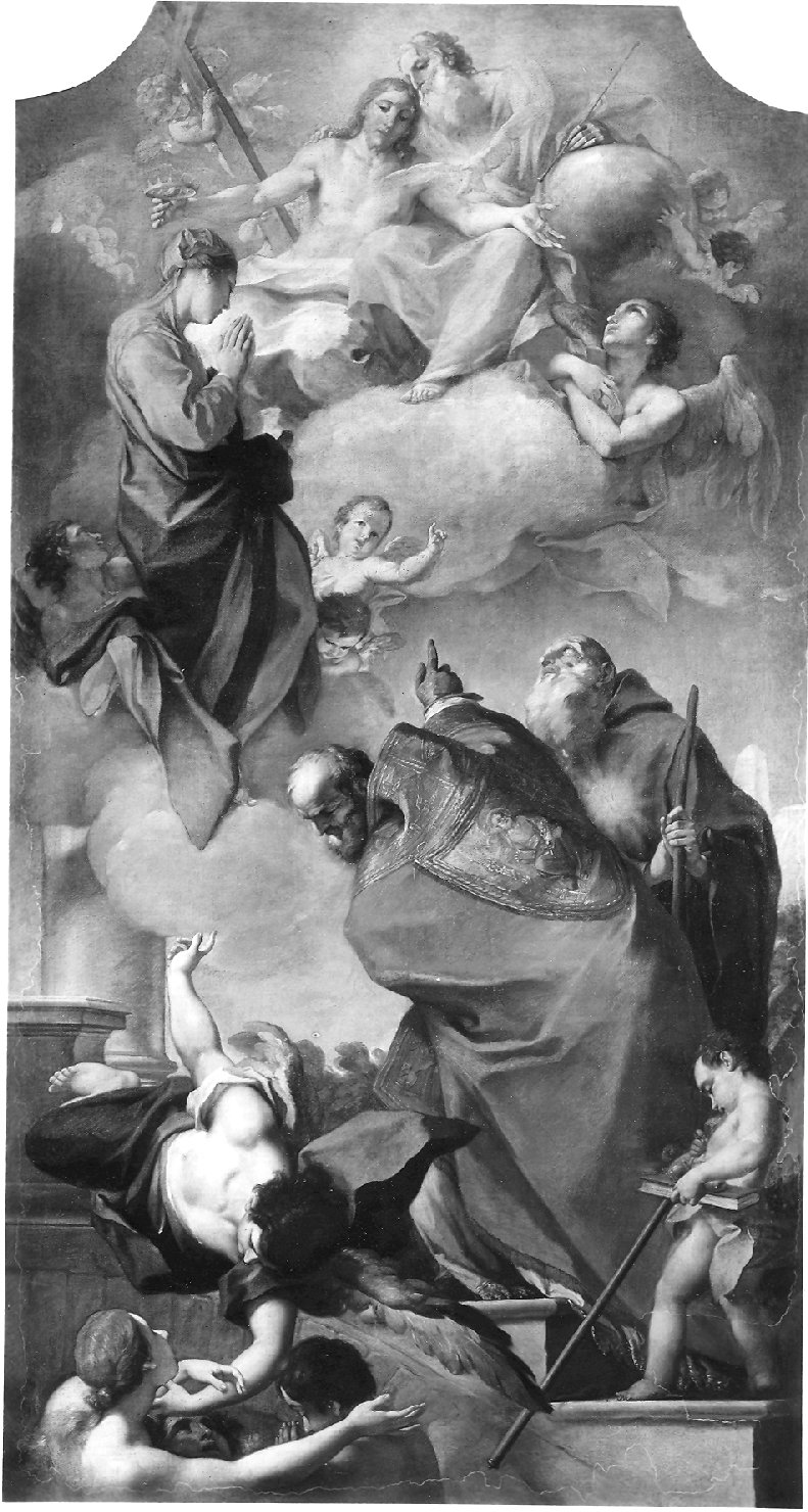 - NOTIZIE STORICO CRITICHE Non sono finora emersi elementi circa la provenienza del dipinto, che doveva essere una pala d'altare. Dal Valcanover giustamente attribuito a Mattia Bortoloni, del quale dovrebbe essere opera giovanile, tanto ricorda specialmente nella parte inferiore i modi del Balestra, maestro dello stesso Bortoloni
