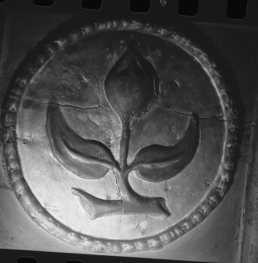 Riquadro con rilievo centrale. Cornice circolare sagomata