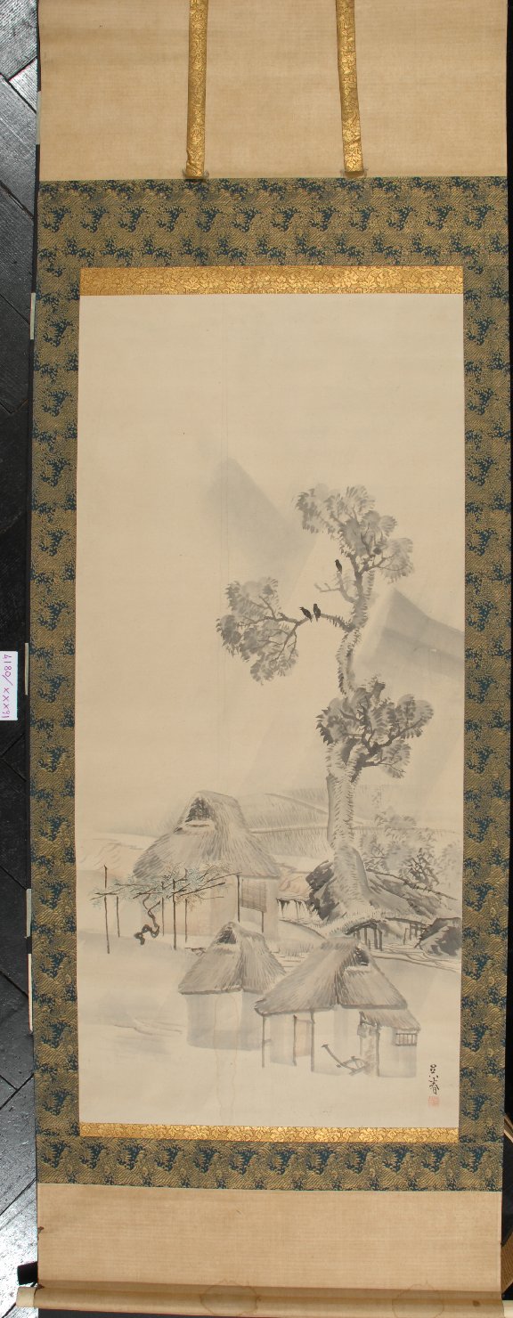 - NOTIZIE STORICO CRITICHE Il Brinckmann pone l'opera nel suo inventario descrittivo del 1908 alnumero 193 dei kakemono giapponesi: "Rauernhäuses in Regen. Bez. Goshun.Dazu Schutzkasten" (Case di contadini nella pioggia. Firmato: Goshun.Inoltre scatola protettiva)