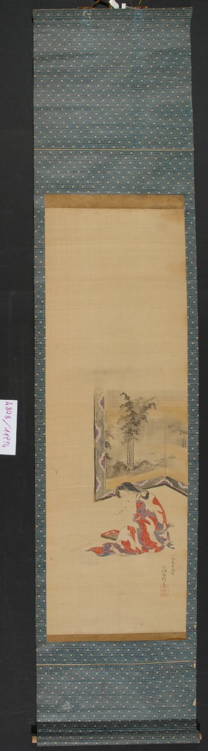 - NOTIZIE STORICO CRITICHE Il Brinckmann pone l'opera nel suo inventario descrittivo del 1908 alnumero 344 dei kakemono giapponesi: "Junges Mädchen schreibend vor einemBiyobu mit Tuschmalerei. Bez. Ansen Takanobu nach einem Bilde vonMatahei" (Giovane fanciulla che scrive davanti a un byôbu dipinto aicnhiostro. Firmato Ansen Takanobu, da un dipinto di Matahei)