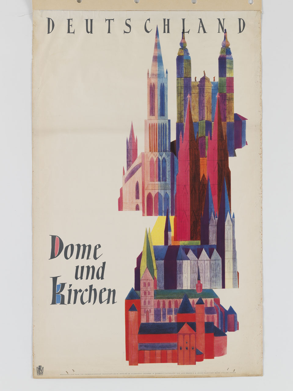 Lettura iconografica: chiesa; duomo; cattedrale. Categoria merceologica/ tipo evento: turismo; enti di promozione turistica. Nomi: Deutschland; ZFV; Deutsche Zentrale für Fremdenverkehr. Luoghi: Germania; Assia; Frankfurt am Main; Francoforte sul Meno