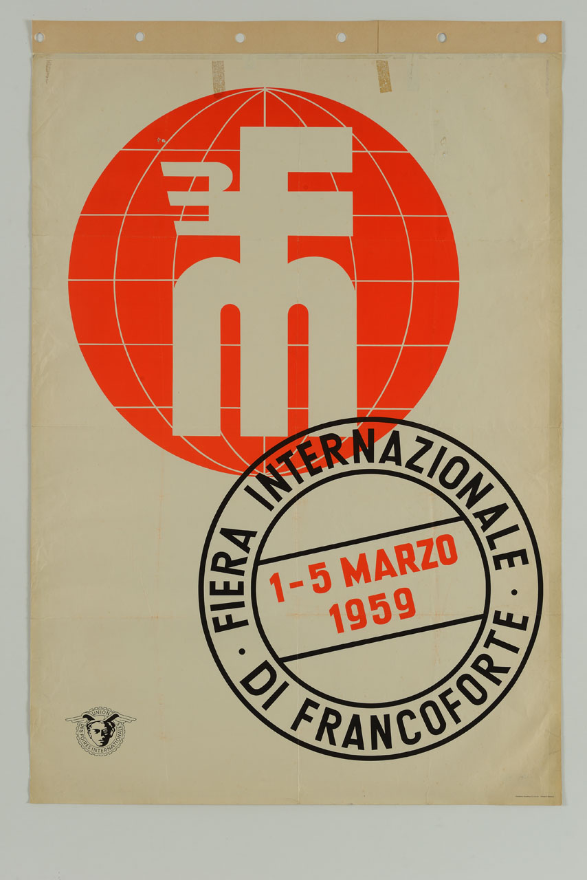 Lettura iconografica: logo; globo terrestre; cerchio. Categoria merceologica/ tipo evento: commercio; industria; artigianato; agricoltura; fiere; associazioni economiche. Nomi: Fiera Internazionale di Francoforte; Union des Foires Internationales. Luoghi: Germania; Assia; Darmstadt; Francoforte sul Meno