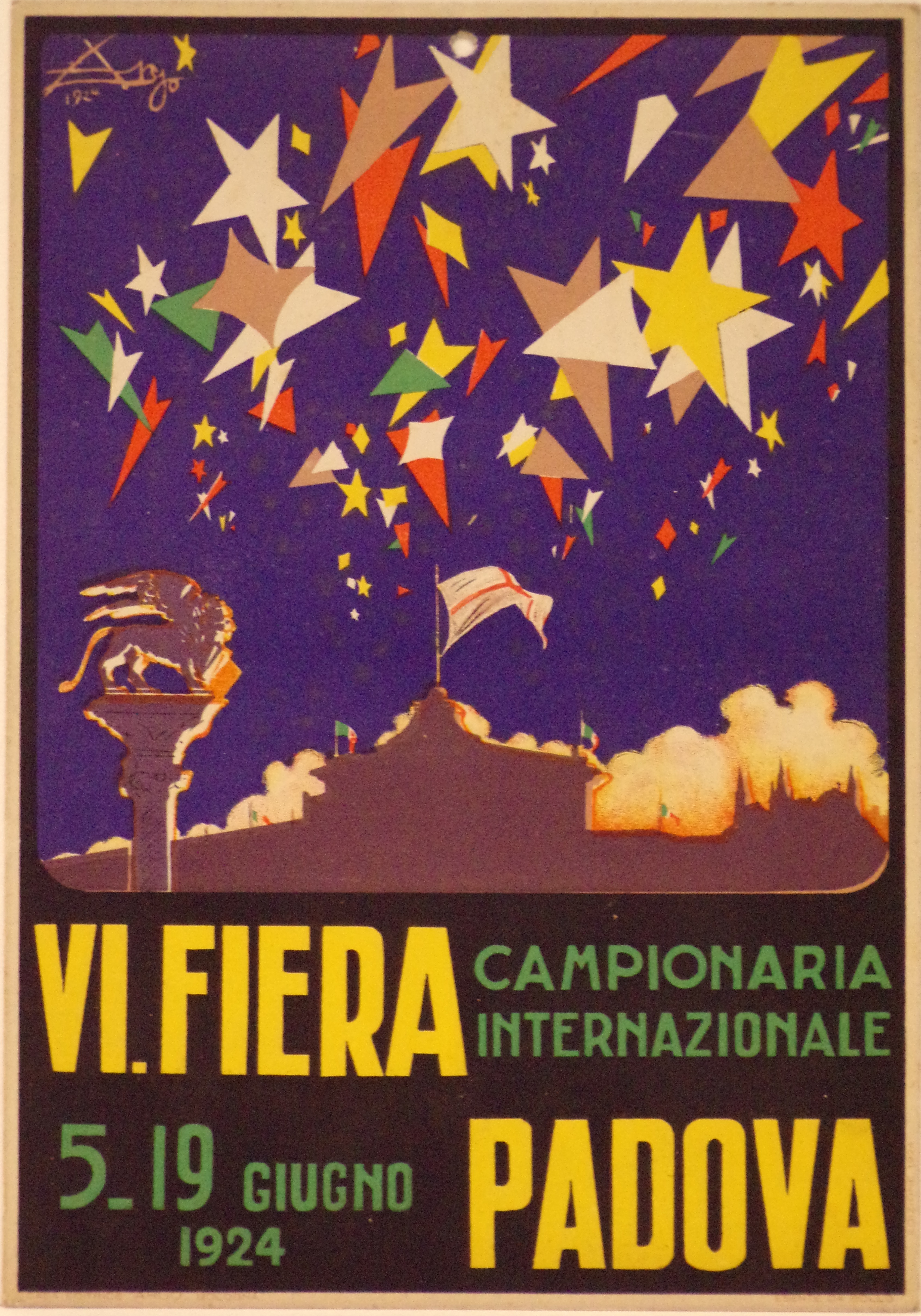 - ISCRIZIONI metà inferiore - VI. FIERA CAMPIONARIA/ INTERNAZIONALE/ 5_19 GIUGNO/ 1924/ PADOVA - corsivo maiuscolo/ corsivo minuscolo -