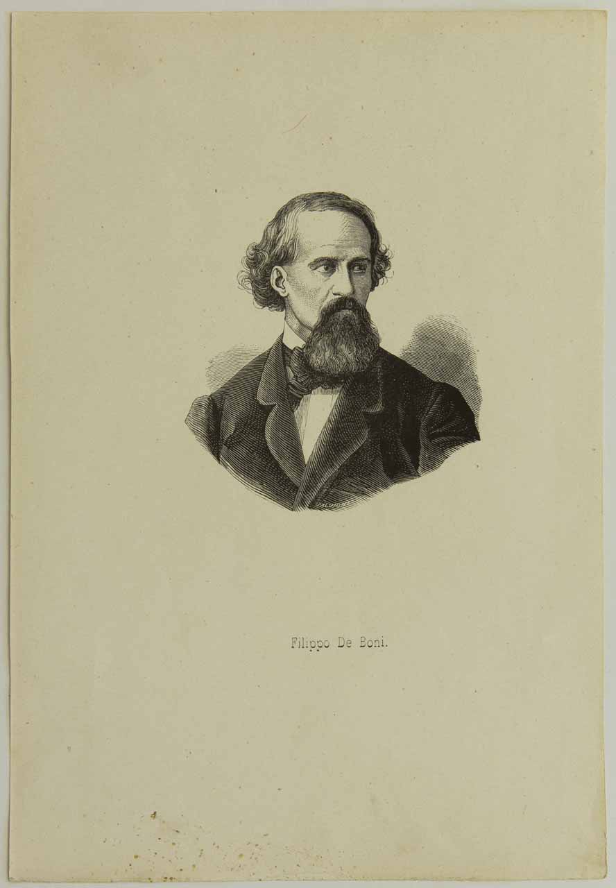 - NOTIZIE STORICO CRITICHE Il ritratto del feltrino Filippo de Boni, giornalista e parlamentare, è ricompresa nella galleria di ritratti di Senatori e Deputati realizzata nel 1860, con xilografie di Giuseppe Salvioni