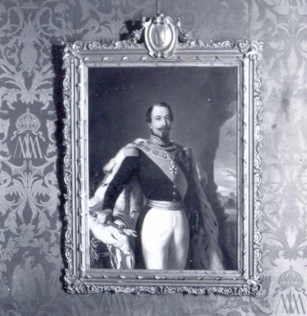 - NOTIZIE STORICO CRITICHE Come si evince dall’iscrizione in basso a sinistra la tela è una copia eseguita da un non meglio precisato Guillemet di un’opera di Winterhalter, pendant del dipinto con uguale genesi dell’Imperatrice Eugenia. Le due tele sono menzionate in una lettera datata 19 settembre 1856 scritta dal Direttore Generale dei Musei Imperiali e Intendente alle belle arti della Casa dell’Imperatore, diretta all’ambasciatore austriaco, il barone de Hubner, in cui egli informa che i ritratti delle Maestà di Francia, eseguiti per “S.A.I. e R. l’Arciduca Ferdinando Massimiliano” erano terminati e potevano essere consegnati all’Ambasciata. Inoltre egli specifica che le copie sono state eseguite con cura da Guillemet, che egli stesso incaricò del lavoro per una somma di 1.200 franchi. L’Intendente chiude la missiva dicendo che si è preso la libertà di indirizzare questo “giovane artista” al barone affinché egli possa regolarizzare la commissione, prontamente pagati il giorno stesso. Sull’identità del giovane autore che ha firmato entrambi ritratti con il nome Guillemet imperiali ci sono ancora delle perplessità. In passato tale nome fu identificato con il famoso Jean Baptiste Antoine Guillemet, pittore nato nel 1843 a Chantilly, allievo di Corot e d’Oudinot, che debuttò al Salon de Paris nel 1865, ottenendo grandi successi e riconoscimenti. Allo stesso nome è legato però un altro pittore francese, Pierre Désiré Guillemet, nato a Lione nel 1827, attivo a Parigi nello stesso periodo. Allievo della Scuola di Belle Arti di Lione, dal 1844 al 1847, e poi allievo di Hyppolite Flandrin, tale artista si stabilì a Parigi dove espose dal 1857 al 1863 alcuni ritratti e dipinti di altro genere. Entrambi i dipinti furono commissionati dall’Imperatore a Winterhalter nel 1853, per celebrare la sua nomina imperiale avvenuta il 1° dicembre 1852, anno in cui fu invitato a Compiègne, divenendo di fatto il primo artista ad essere onorato di tale invito, prima dell’istituzione dei celebri séries di Compiégne, i ricevimenti ufficiali organizzati dall’Imperatore quattro o cinque volte l’anno. L’Imperatore tuttavia non gradì particolarmente il risultato dell’esecuzione, tanto da eseguire per sua Maestà soltanto un altro ritratto, circa quattro anni dopo, in abiti borghesi. Ciò nonostante Winterhalter conobbe numerosi privilegi presso Napoleone III, divenendo di fatto pittore di corte nel 1854. Il ritratto ufficiale di Winterhalter, così come quello dell’Imperatrice, è andato perduto e conosciuto oggi nella versione di bottega conservata nella Collection The Crown Estate Commissioners. Dei due pendant tuttavia esistono numerose copie, varianti e repliche. Molto vicino al dipinto a figura intera è la copia presente al Museo Napoleonico di Roma. Rispetto all’opera originale l’artista Guillemet, come per il ritratto di Eugenia, comprime la rappresentazione, lasciando parzialmente intravedere la corona imperiale lasciata scoperto dal mantello di ermellino alle sue spalle e riduce il tendaggio per lasciare spazio al brano paesaggistico sulla destra. Mentre il ritratto di Eugenia è citato nell’inventario dei beni di Miramare redatto prima del 1868, quello dell’Imperatore non lo è. Le tele vengono citate insieme nel 1902, in una guida della residenza di Miramare, che li descrive negli appartamenti destinati alle persone del seguito, al secondo piano del Castello, “un tempo ornamento delle pareti della camera arciducale al pianterreno” (De Bei, 2005)