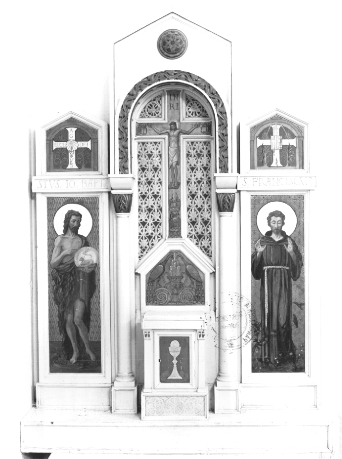 - ISCRIZIONI Sui bracci della croce in alto a sinistra - ECCE/ AG/ NVS/ DEI - lettere capitali - a pennello -