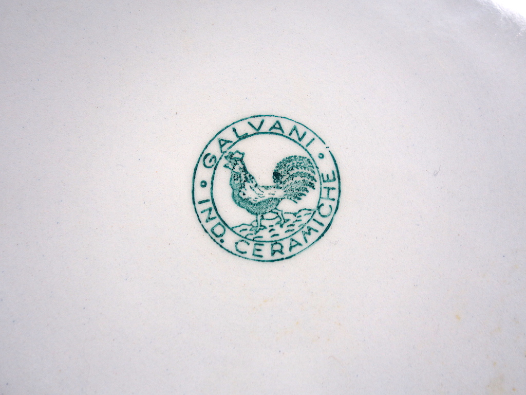 - STEMMI sotto alla base - di fabbrica - Marchio - Ceramiche Galvani - 1 - gallo andante entro corona circolare con la scritta GALVANI/ IND. CERAMICHE; timbro