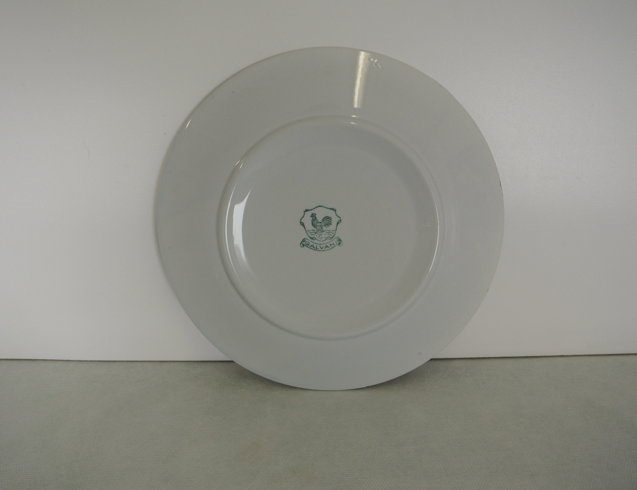 - STEMMI sotto alla base - di fabbrica - Marchio - Ceramiche Galvani - 1 - gallo andante entro stemma sopra cartiglio con la scritta GALVANI, timbrato