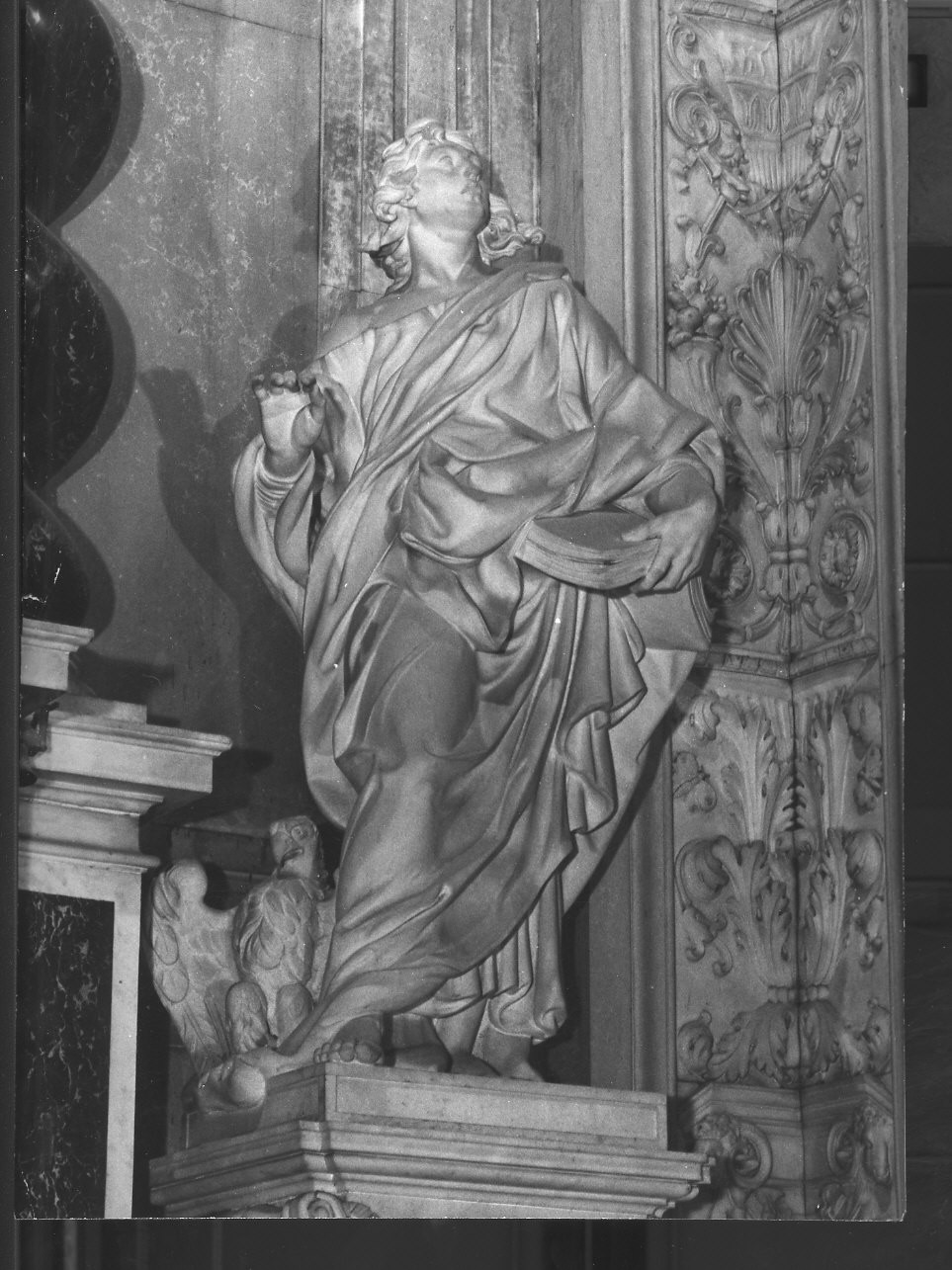La statua in "pendant" con quella di San Giuseppe, è collocata a destra dell'altar maggiore. Tiene in alto nella mano sinistra il Vangelo; ai suoi piedi ha l'aquila, il suo simbolo