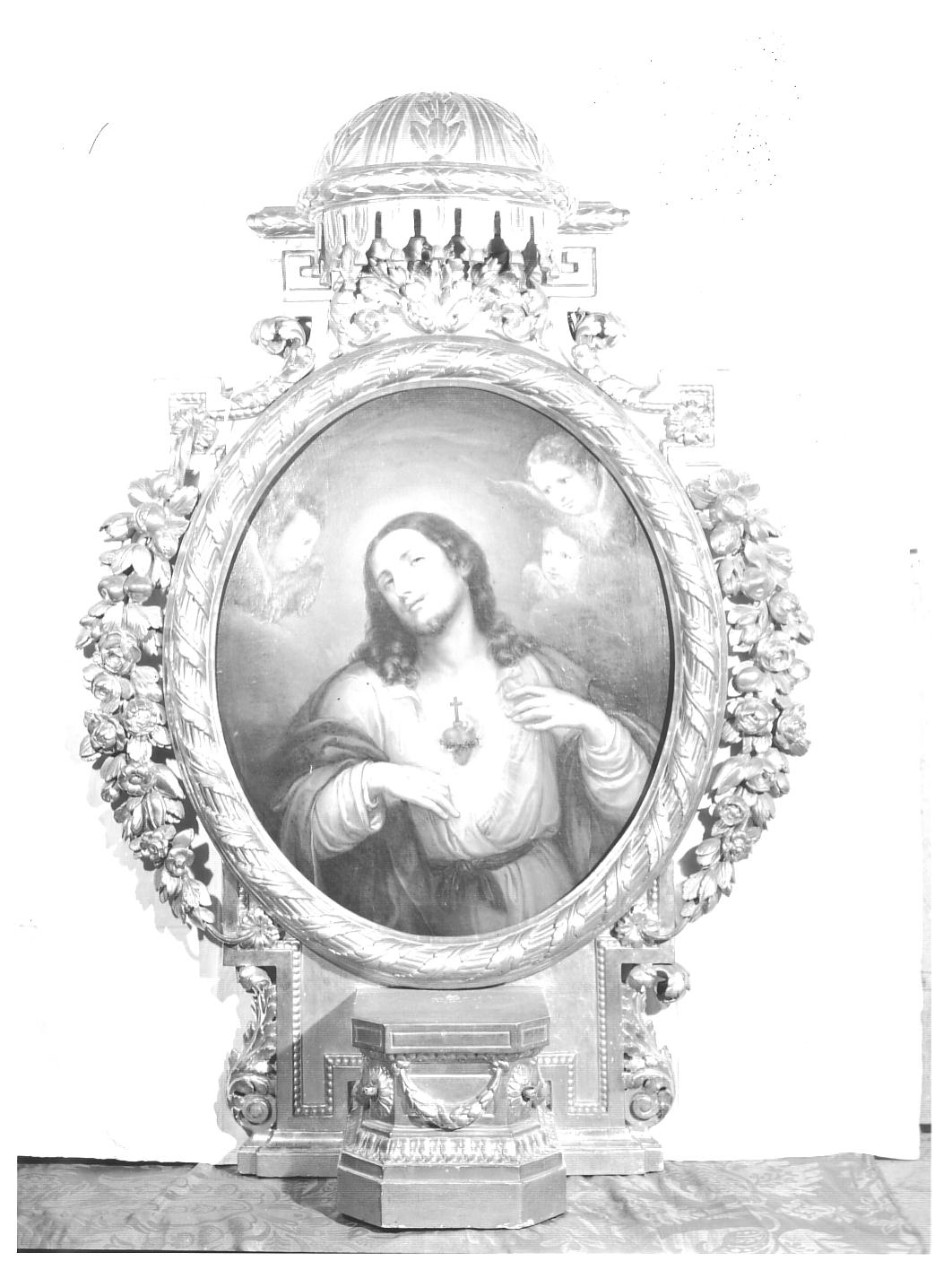 Personaggi: Cristo. Simboli della passione: cuore coronato di spine; croce. Figure: cherubini. Fenomeni divini: chiarore diffuso