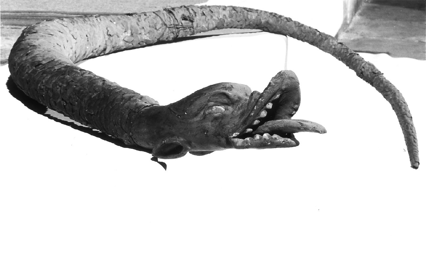 Il serpente, dal corpo a fitte scaglie, ha la testa atteggiata ad una espressione feroce, con la lingua rossa fuoriuscente. Il suo corpo disegna un ampio cerchio