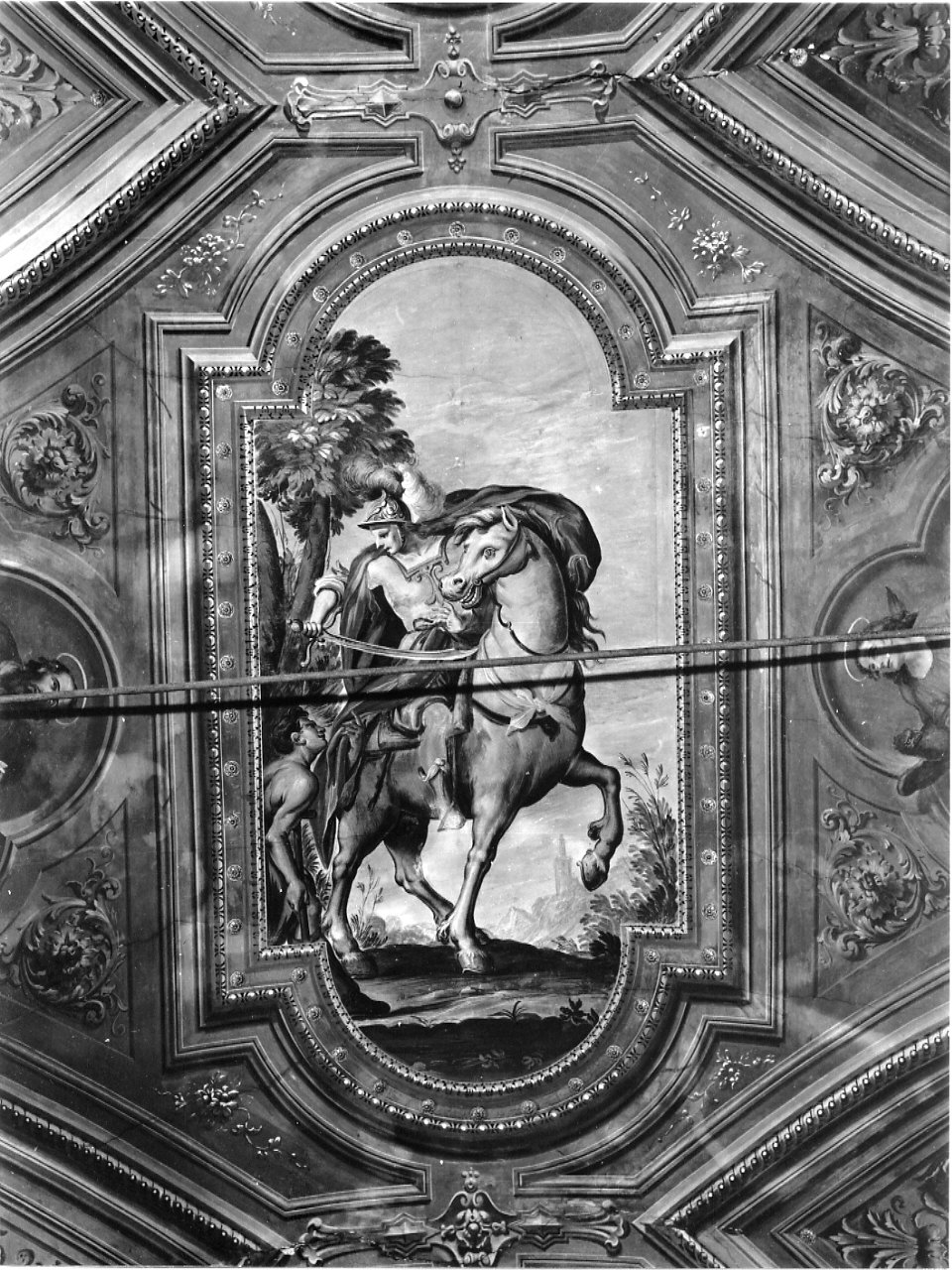 Personaggi: San Martino. Attributi: (San Martino) mantello. Personaggi: povero storpio. Animali: cavallo. Paesaggi: paesaggio con alberi