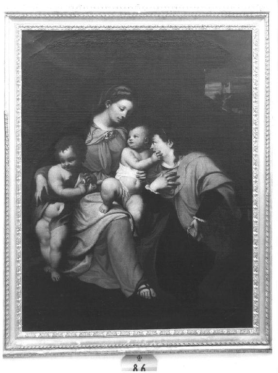 - NOTIZIE STORICO CRITICHE Il dipinto è menzionato nell'Inventario della donazione, dal quale si apprende che prima di essere collocato nei depositi si trovava nel salotto Luigi XVI, al piano nobile. Da tale fonte risulta che l'opera, indicata con il titolo di Madonna e Santa Caterina, era datata al XVII secolo e attribuita a un artista di ambito bolognese. I suoi caratteri stilistici non sembrano infatti in contraddizione con tali affermazioni