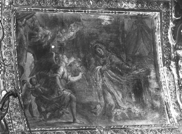 affresco inserito entro cornice raffigurante l' Annunciazione