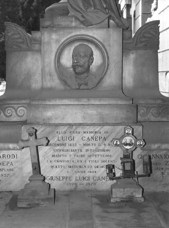 Monumento funebre.Purtroppo non possediamo l'iscrizione presente sull'oggetto e, basandosi sulla fotografia, non si è in grado di decifrarla correttamente; diamo valida la data e l'autore precedentementi proposti