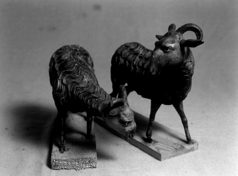 Statua da presepio.LEGNO SCOLPITO/ DIPINTO.VETRO POLICROMO