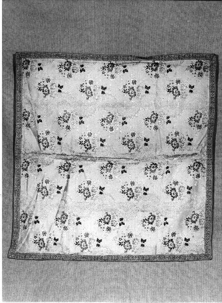 VELO DI CALICE.RASO CREMA BROCCATO A FIORI.GALLONE TESSUTO.FODERA COTONE GIALLO