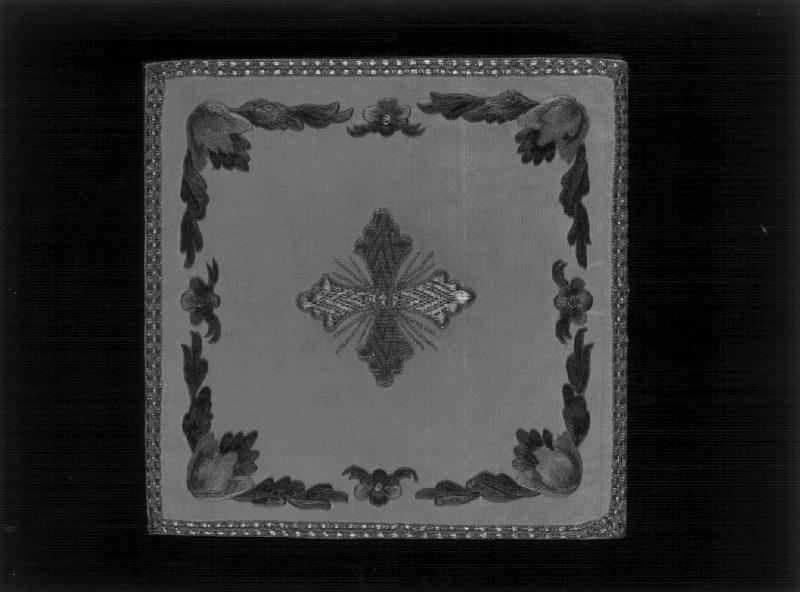 BORSA.GROS DE TOURS DI SETA BIANCO RICAMATO IN FILO DI SETA POLICROMO FILO DORATO.GALLONE IN FILO DORATO.FODERA IN COTONE CREMISI