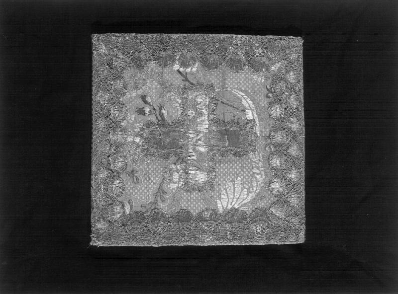 BORSA.SETA OPERATA AZZURRA LISERE' BROCCATA.TELETTA D'ARGENTO OPERATA.GALLONE IN FILO D'ARGENTO.FODERA SETA OPERATA AZZURRA LISERE' BROCCATO