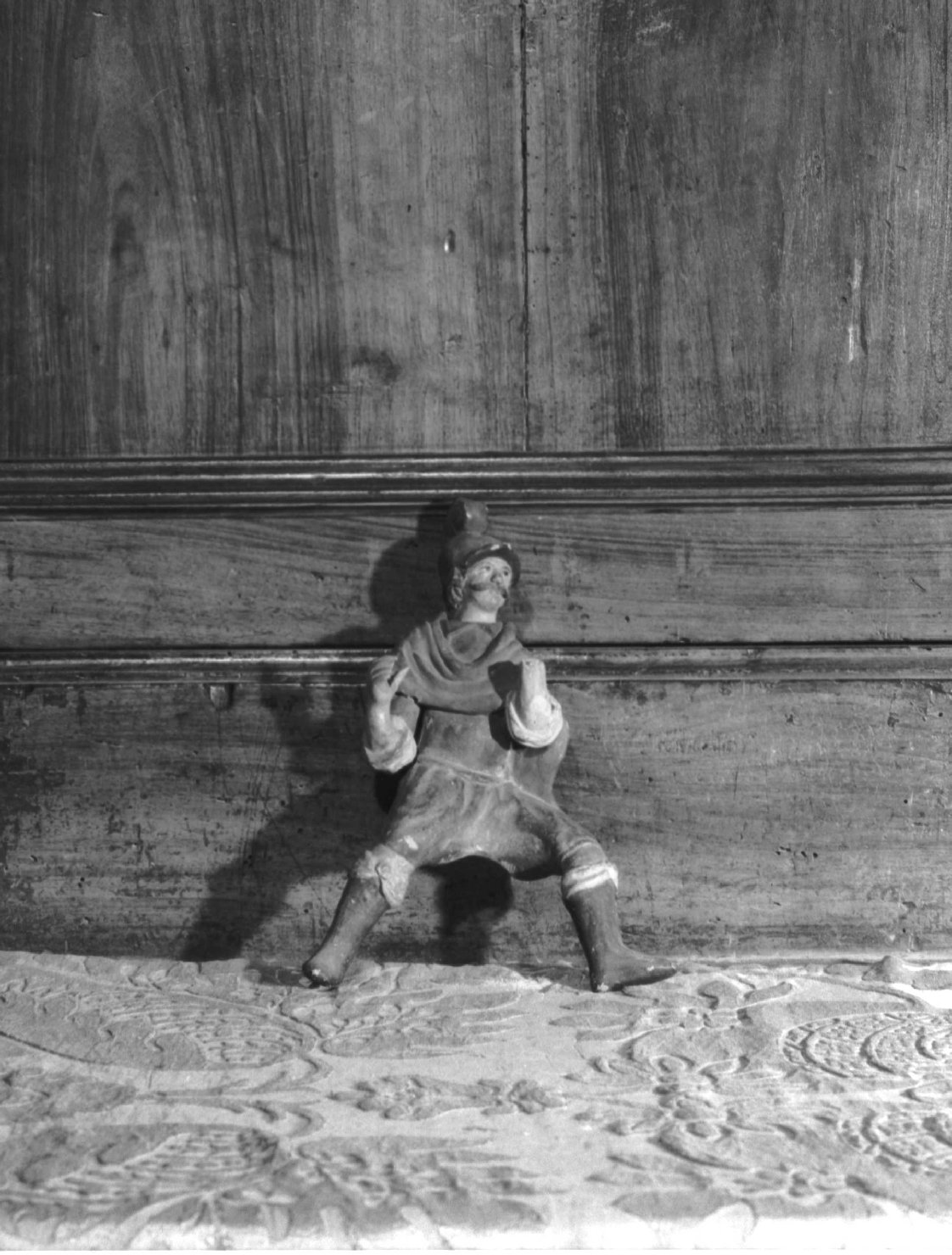 - NOTIZIE STORICO CRITICHE E' andata perduta la figura dell'animale montata dal cavaliere. per la tipologia popolare e la tipica fisionomia dei volti la statuetta e' attribuibile alla produzione della bottega di Antonio Tambuscio, principale rappresentante novecentesco della tradizione dei presepi popolari in terracotta a Savona