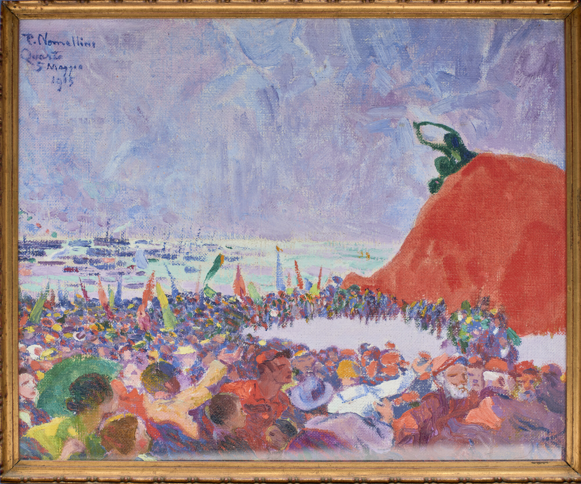 La tela raffigura l'inaugurazione del monumento ai Mille nel quartiere genovese di Quarto