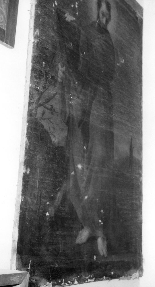 - NOTIZIE STORICO CRITICHE Il Malvasia (1686) riferisce che l'inconsueta immagine di questo "terribile San Francesco" si deve a Gabriele Ferrantini, che avrebbe anche dipinto a fresco l'oratorio. L'attribuzione è stata raccolta anche da studiosi moderni. La tela si conservava nell'oratorio di San Sebastiano, ove già si trovava prima del rifacimento del medesimo (1840), danneggiato dai bombardamenti del 12 ottobre 1944. L'edificio fu completamente demolito, nonostante le proteste del parroco don Bonetti, secondo un piano comunale di ricostruzione della zona adiacente