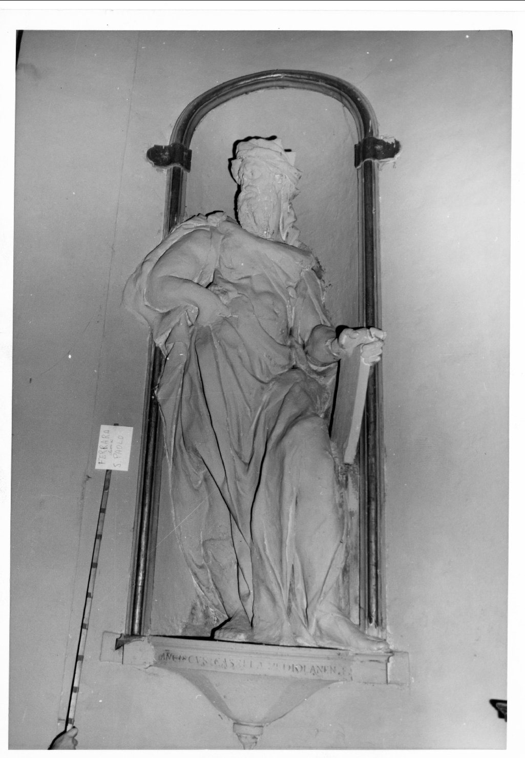 - NOTIZIE STORICO CRITICHE Opera discreta dello scultore Francesco Casella, nato a Carona e stabilitosi a Ferrara nel 1598. La figura rivela l'ascendenza ancora mnieristica dell'autore ed, insieme, alcune caratteristiche già protobarocche per la dinamica ed ansiosa movimentazione delle vesti