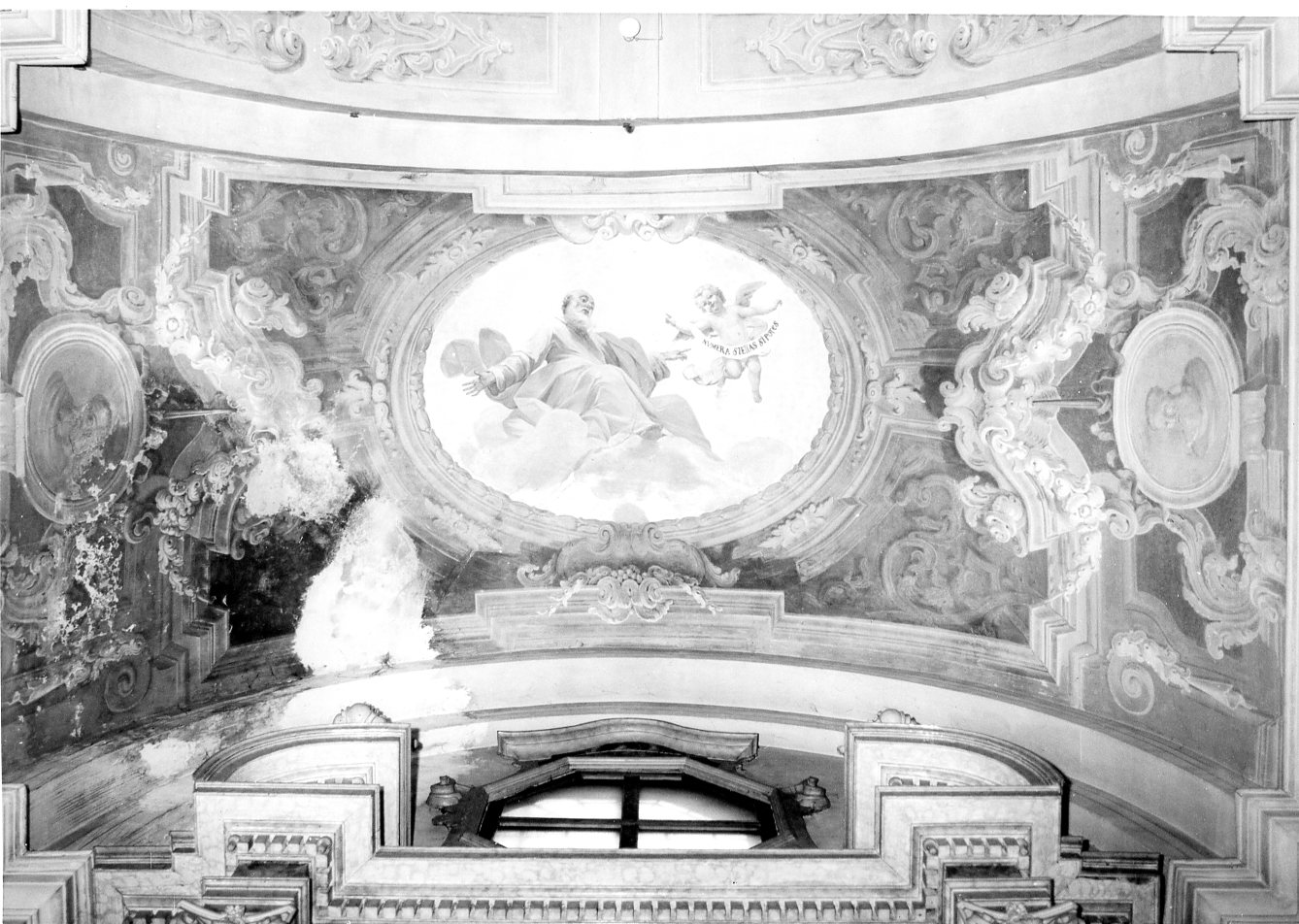 Al centro della volta entro un oculo ovale il Padre Eterno, assiso su nubi, si rivolge ad un angioletto che reca un cartiglio. Ai lati della volta volute e stucchi a pittura con due medaglioni recanti effigi di uomini