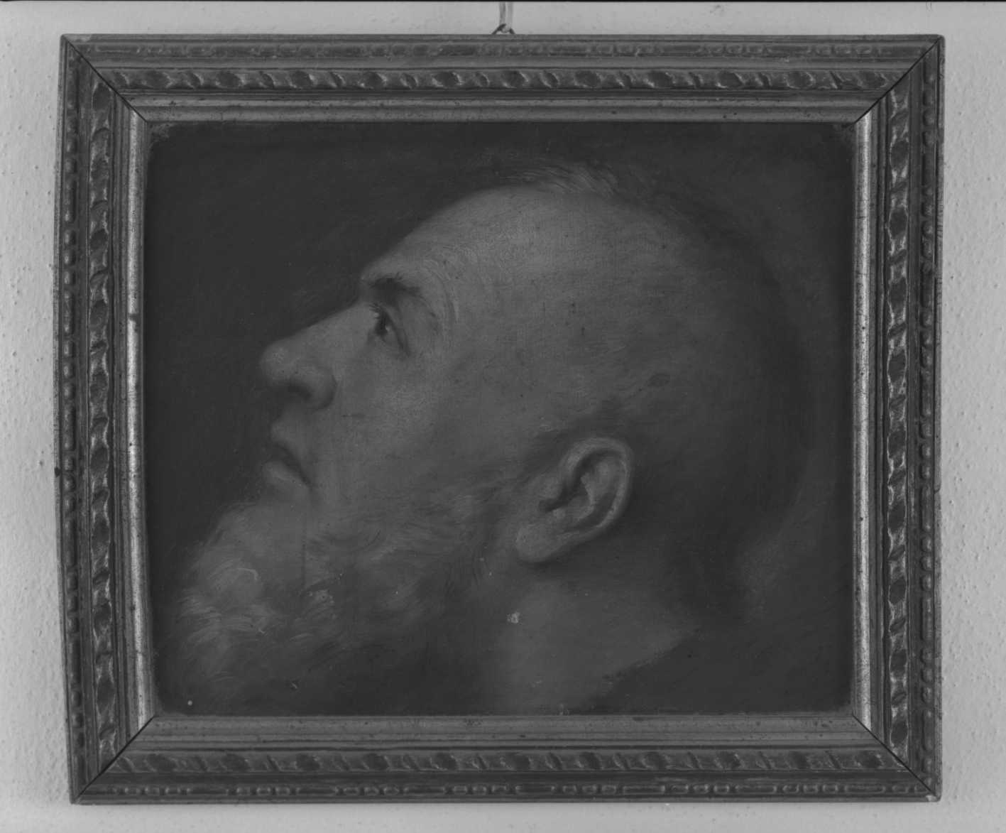 Il volto del frate occupa l'intero spazio dell'opera. Si tratta di uno studio preparatorio