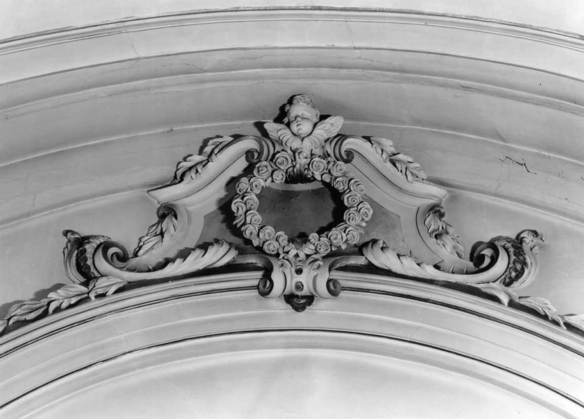 putto alato; festone con fiori; motivi decorativi vegetali a volute