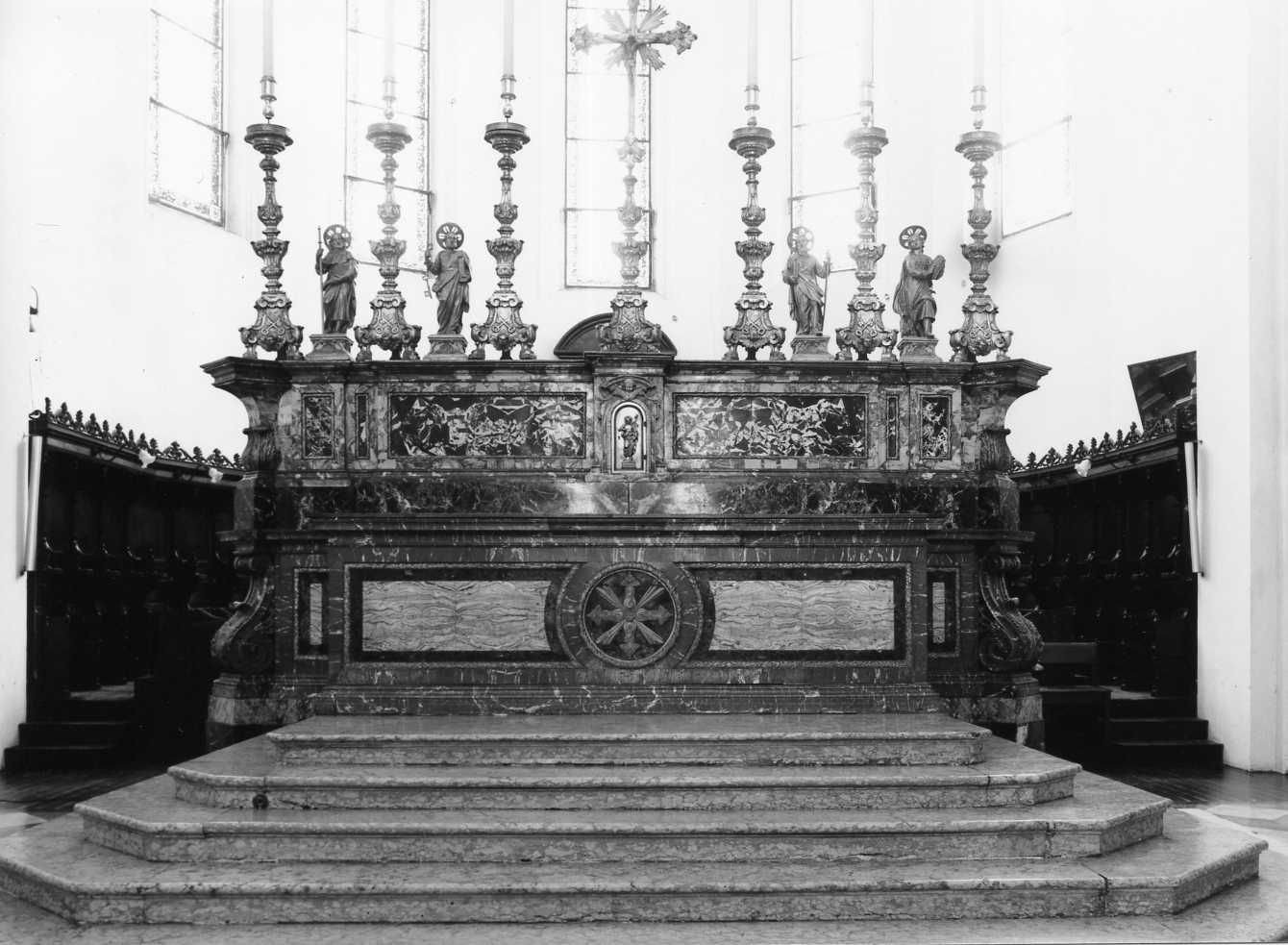 Costituito da marmi vari: incorniciatura di rosso di Francia racchiudono specchiature in brecce varie. Il paliotto in marmo verde e breccia venata con specchiatura bordata da una decorazione dorata