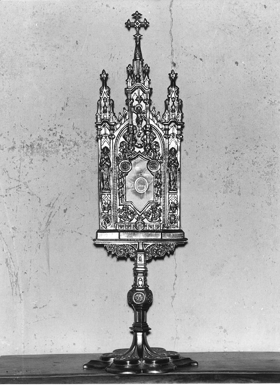 - NOTIZIE STORICO CRITICHE La decorazione che recupera motivi medioevali è tipica del gusto eclettico imperante nella seconda metà del sec. XIX. Il reliquiario è datato infatti 9 settembre 1897. La stessa data compare nella lapide dedicata allo stesso Don Gasparini, parroco di Rallio (cfr. scheda n. 58) dal 1851 al 1908