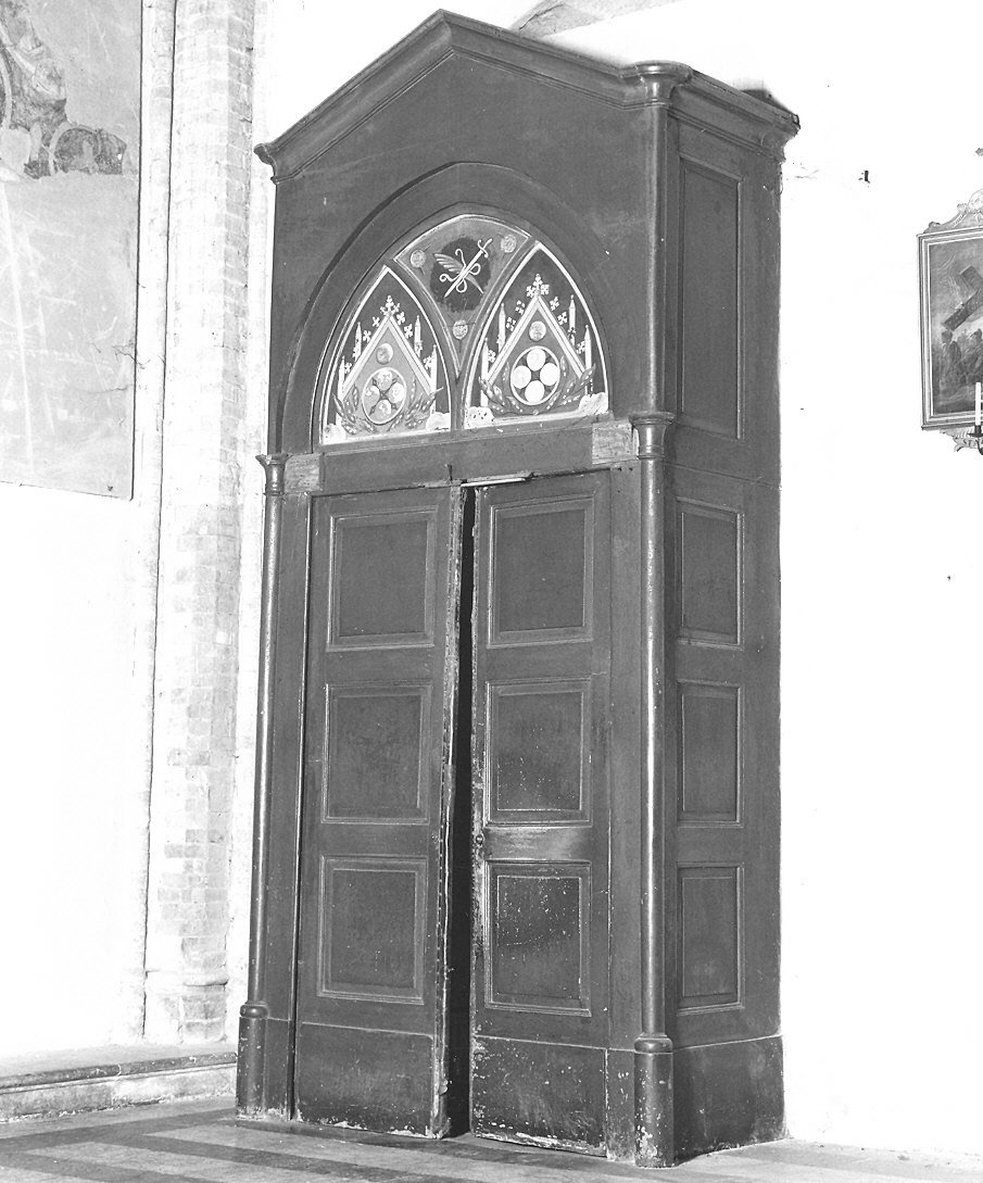 - NOTIZIE STORICO CRITICHE Le bussole, che sostituiscono le originarie della metà del secolo XVI, presentano una sommaria ripresa di quella mggiore e possono essere fatte risalire alla fine del XIX secolo, a ridosso dei lavori del 1881 a cui si possono riferire realizzazioni di gusto neogotico come il pulpito (scheda 00154630) e la residenza (scheda 00154634)