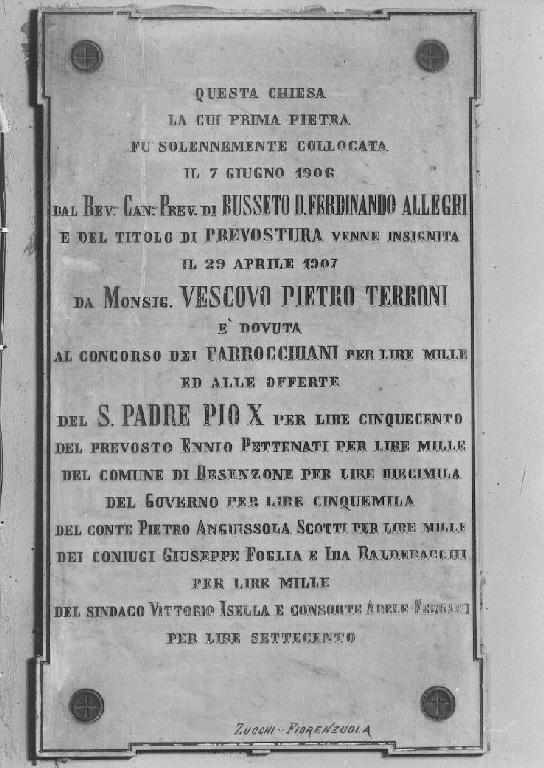 lapide documentaria di Zucchi Carlo (sec. XX)