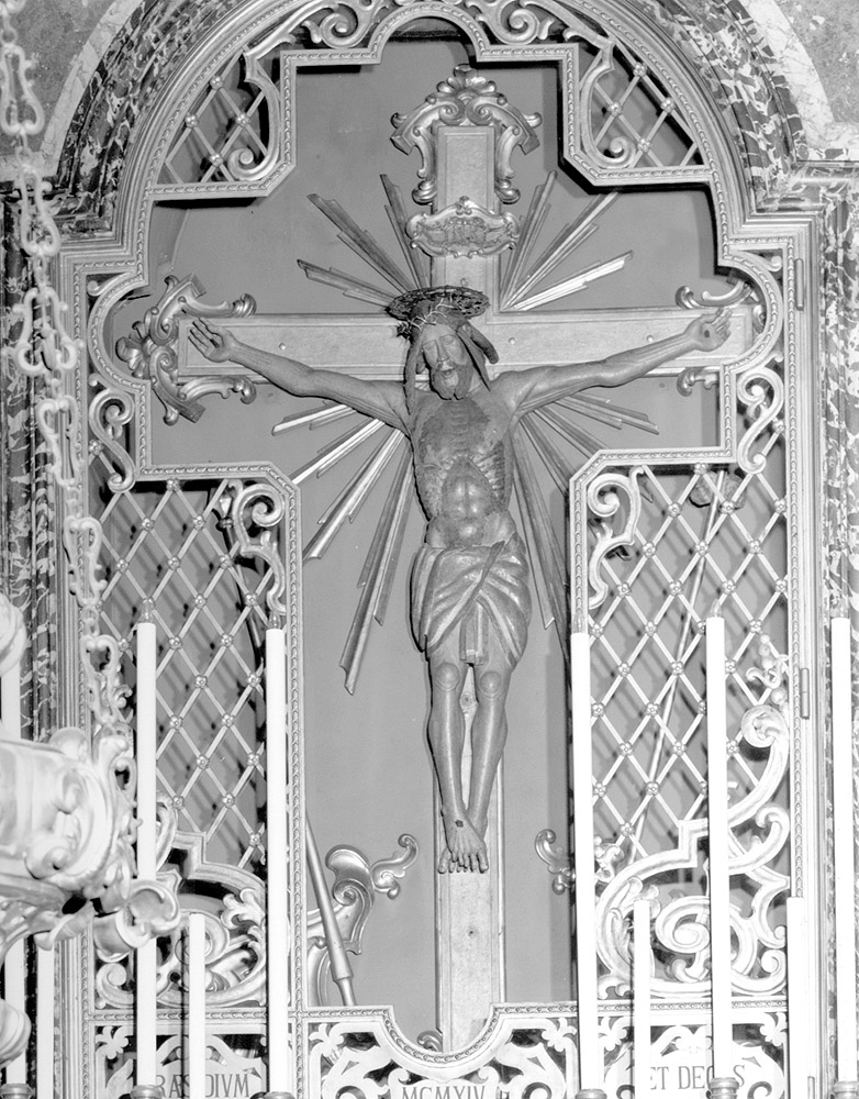 - NOTIZIE STORICO CRITICHE Il restauratore Lorenzo Rossi mi ha comunicato che il Cristo è in legno di noce, scolpito in uno strato di tavole incollate tra loro. Questo smentisce la tradizione che vorrebbe la statua in legno di cipresso (capo) e in legno di larice (resto del corpo) perchè realizzata in due tempi diversi. All'epoca dell'ultimo restauro fu studiato da Eugenio Riccomini