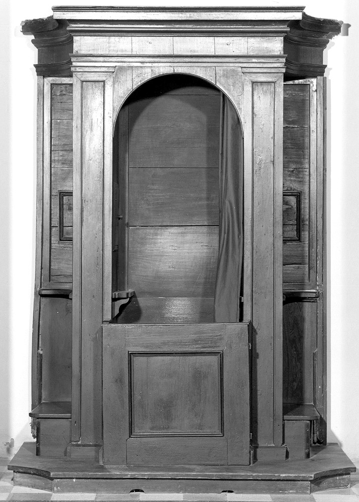- NOTIZIE STORICO CRITICHE Un confessionale (scheda n.00292456) abbastanza simile ha due incisioni datate al 1859 che potrebbero suggerire un termine di riferimento per il manufatto ligneo