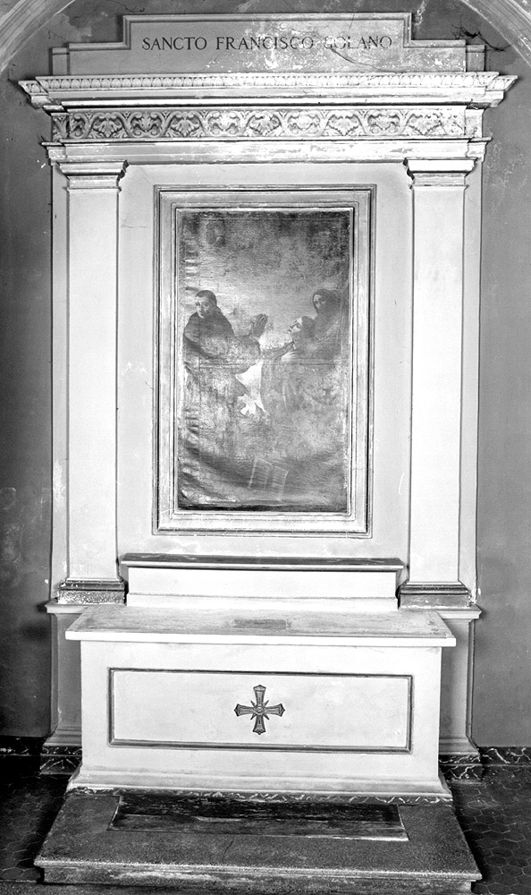 - ISCRIZIONI cimasa altare sinistro - SANCTO FRANCISCO SOLANO - lettere capitali - a pennello -