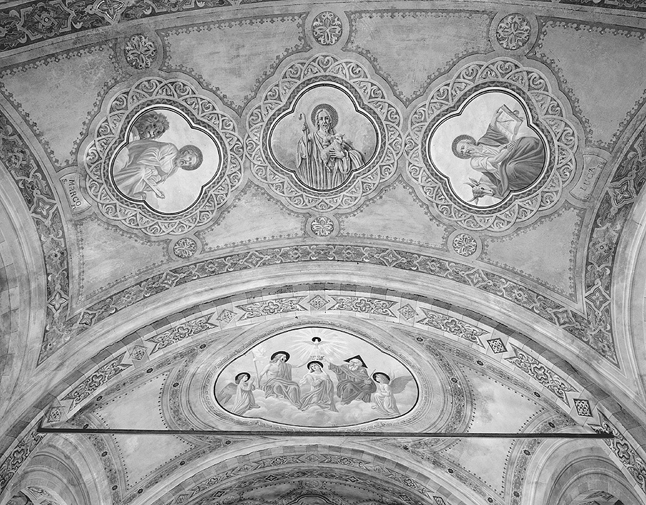 DIO PADRE E CRISTO INCORONANO LA MADONNA; QUATTRO EVANGELISTI; ANNUNCIAZIONE; AGNUS DEI; ANGELI REGGICORONA