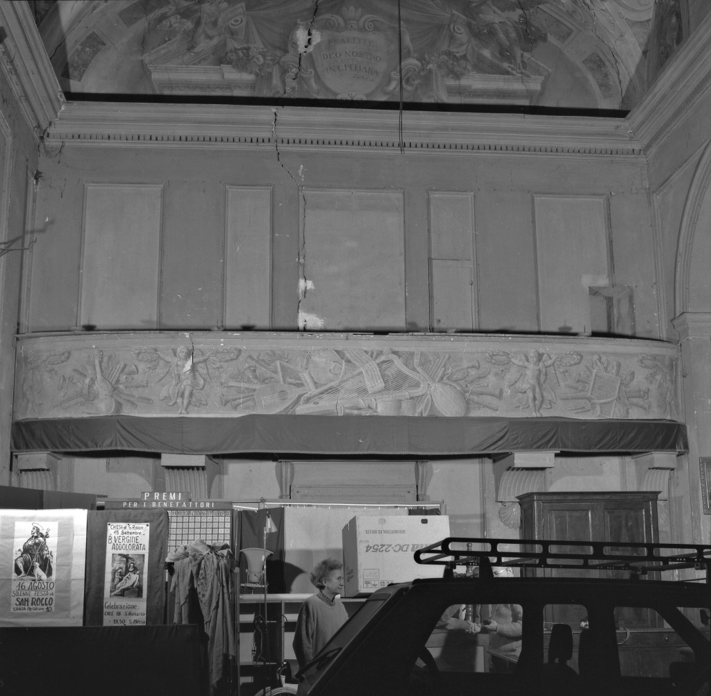 - NOTIZIE STORICO CRITICHE Nel 1827 fu allestito un obitorio a fianco della chiesa e si pose mano alla risistemazione della chiesa di San Rocco. Le pareti e le due cantorie furono rimodernate su disegno dell'architetto Luigi Marchesini. I pittori Manfredini G. e Zaccarini A. fecero rispettivamente gli ornati e i puttini delle cantorie. Oggi ne resta solo una in quanto l'altra fu demolita a causa dei danneggiamenti provocati dai bombardamenti del 1944