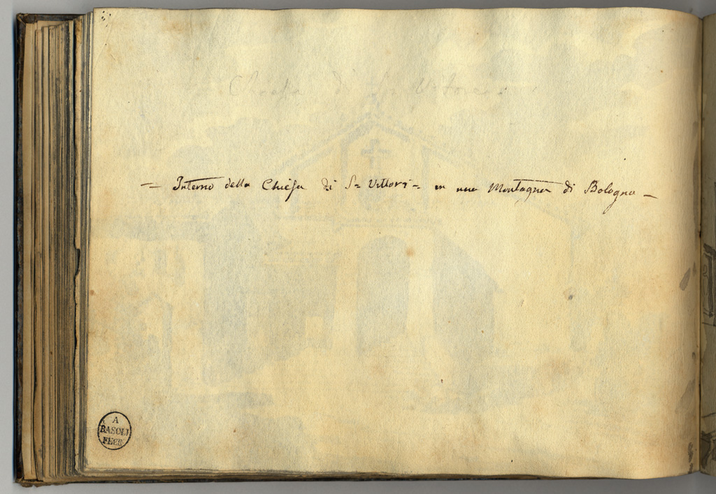 - ISCRIZIONI pagina precedente, verso - FACCIATA DELLA CHIESA DI S. VITTORE IN BOLOGNA - corsivo -