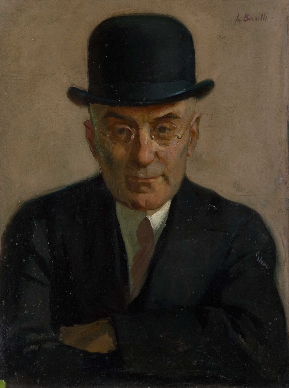 - NOTIZIE STORICO CRITICHE Si ignora la provenienza di questo ritratto di limpida ricerca fisionomica e analisi caratteriale, forse donato dall'artista, raffigurante un uomo di mezza età in risoluta posa frontale con le braccia incrociate al petto e, forse, un sorriso appena accennato
