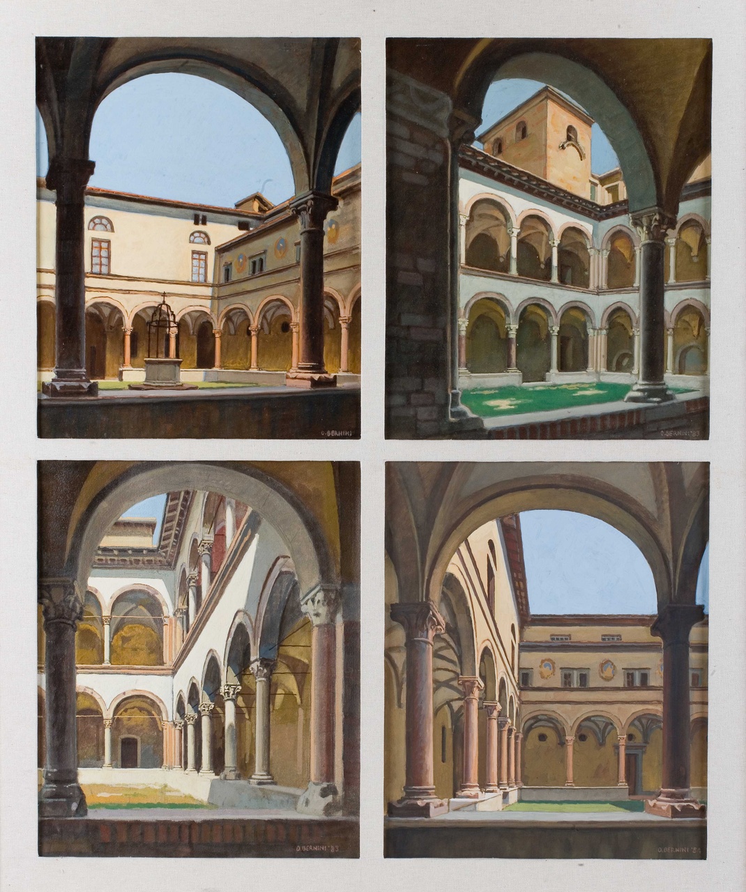 - NOTIZIE STORICO CRITICHE Si tratta di quattro dipinti su cartone racchiusi entro un'unica cornice raffiguranti i chiostri del monastero di San Giovanni Evangelista (in alto a sinistra e in basso a destra) e del monastero di San Paolo (in alto a destra e in basso a sinistra)