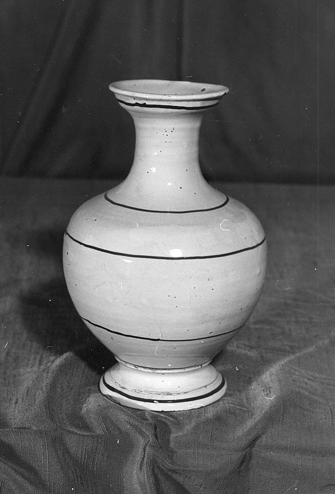 - NOTIZIE STORICO CRITICHE La fiasca appartiene al gruppo, numericamente abbastanza cospicuo, senza iscrizioni, senza dubbio commissionato intenzionalmente anepigrafo allo scopo di poterne cambiare il contenuto. Le caratteristiche morfologiche e tecniche sono settecentesche, mostrando nello specifico uno smalto non particolarmente raffinato e una notevole robustezza, forse in previsione di un loro uso frequente e rinnovato