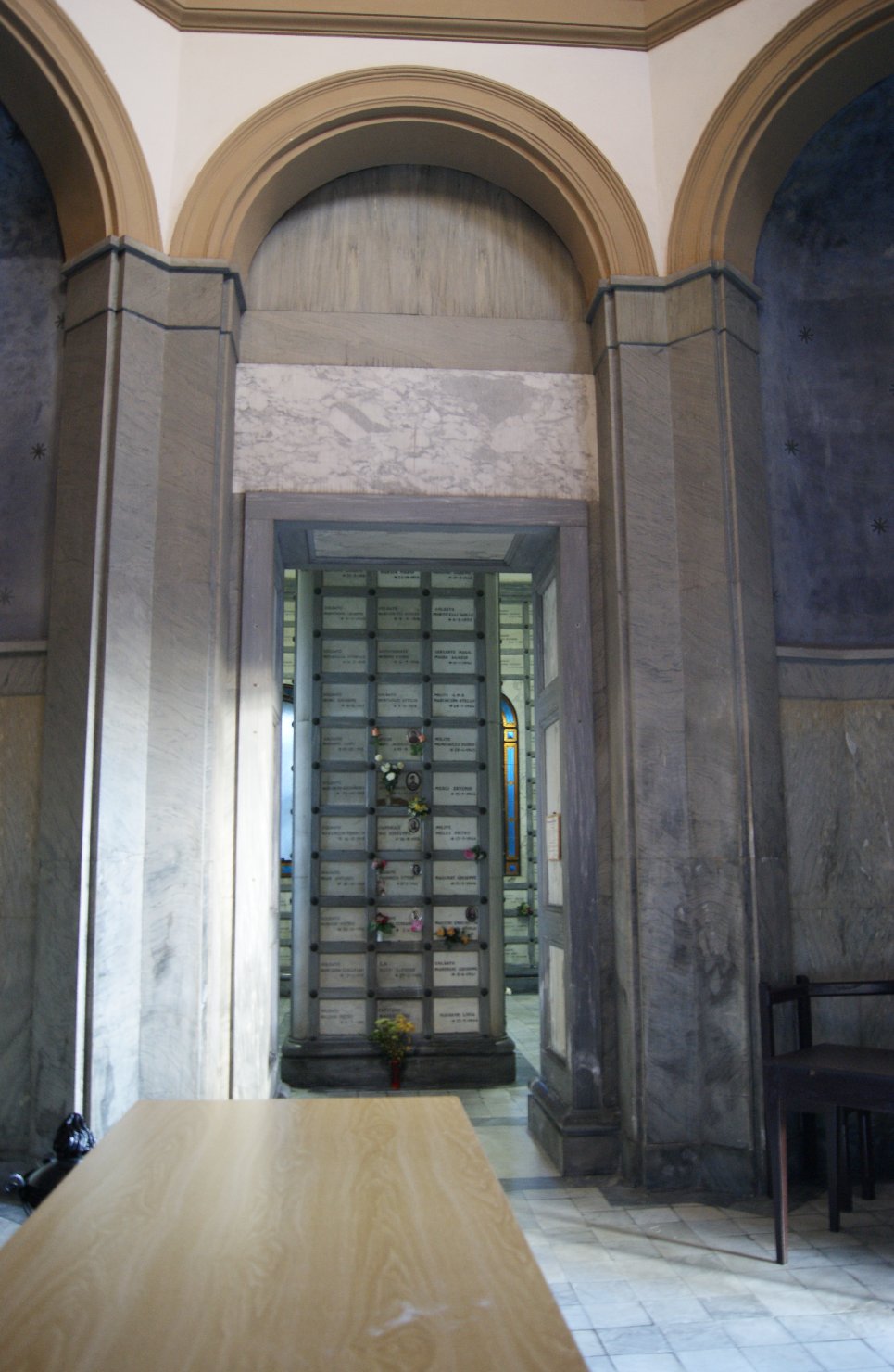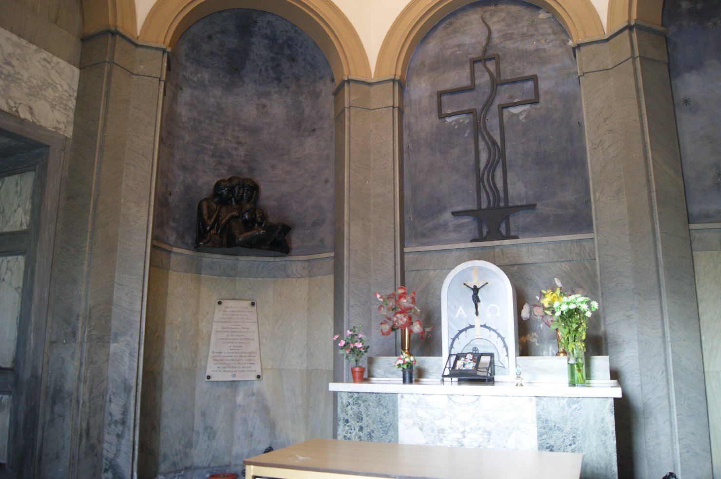 - NOTIZIE STORICO CRITICHE Durante gli anni del conflitto e nel periodo immediatamente successivo i caduti del Comune di Piacenza, deceduti in guerra o per le sue conseguenze, venivano sepolti nel cimitero urbano, all’interno del secondo campo, in tombe singole. Fin dal termine del conflitto, ogni anno, in occasione della commemorazione dei defunti si tenevano cerimonie ufficiali alla presenza delle autorità cittadine, delle associazioni combattentistiche, dei reduci e della cittadinanza. Nel 1930 il Comune di Piacenza decise di riservare un’area del cimitero principale della città per il collocamento decoroso e definitivo delle salme dei caduti in guerra. L’area venne identificata un anno dopo: “Il Comune intenderebbe destinare l’Ara crematoria del cimitero suburbano per la conservazione delle cassette contenenti i resti mortali delle salme dei gloriosi caduti in guerra, trasformando la detta Ara in Famedio dei caduti”. Il luogo individuato versava in pessime condizioni e il forno non era più attivo; il presidente e i soci della Società per la Cremazione si dichiararono favorevoli a cedere l’edificio al comune in cambio di una cappella. Il 27 luglio 1931 il servizio demografico e di stato civile del Comune di Piacenza inviò al Podestà l’elenco dei caduti inumati nel cimitero stesso: se ne contarono 1536. Alcune famiglie chiesero il ritorno del figlio o del parente nel paese d’origine, altri furono dislocati per motivi diversi e le salme da spostare risultarono alla fine 1342. Nel 1934 la Giunta Municipale approvò il progetto tecnico e il preventivo di spesa per i lavori di trasformazione dell’Ara crematoria; vincitrice dell’appalto fu la Società Anonima Costruzioni che però firmò il contratto solo nel 1936. La spesa prevista fu aumentata con una successiva delibera del 1938: si coprivano così anche i costi delle pietre e dei marmi di copertura e del pavimento; l’intera spesa fu sostenuta dal Comune senza alcun concorso statale. La decorazione pittorica della cappella fu affidata alla supervisione del pittore Luciano Ricchetti. Il 10 febbraio 1939 l’ingegner Amilcare Fornero fu nominato collaudatore dei lavori che terminarono ufficialmente alla fine di giugno di quello stesso anno. (Bibliografia e fonti: "Libertà" 21 dicembre 1918; "Libertà" 27 dicembre 1918; “Ragazzi : Piacentini alla guerra del '15-'18”: cata-logo quaderno didattico della mostra, Piacenza Archivio di Stato 4 novembre 2011 - 20 febbraio 2012, a cura di Anna Riva, Piacenza : Archivio di Stato, 2011 , pp. 119-120; “Documenti e disegni riguardanti il Famedio dei Caduti nel cimitero di Piacenza”, Piacenza, 1934-1939; ASPc, ASCPc, Sanità pubblica, b. 119, fasc. «Sistemazione dell’ara crematoria nel cimitero suburbano a Famedio per i caduti nella Guerra Mondiale, anno 1934....»; Documenti e disegni riguardanti la sistemazione del Famedio dei Caduti nel cimitero di Piacenza, Piacenza, 1882-1931; ASPc, ASCPc, Miscellanea Ottolenghi, b. 31, fasc. 3 «1931 Area Crematoria»; "La grande guerra. Monumenti e testimonianze nelle province di Parma e Piacenza", a cura della SBSAE di Parma e Piacenza, 2013, pp.148-149)