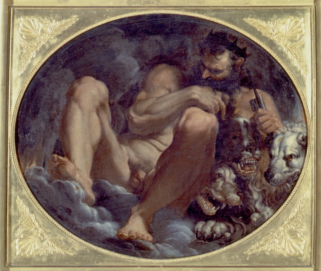 Dipinto ad olio su tela (ellittica) di Carracci Agostino (Bologna, 1557 - Parma, 1602) con la rappresentazione di Plutone con Cerbero. Le misure sono le seguenti: 109x 130 cm Ubicazione: Galleria Estense di Modena, Sala 20. Cornice rettangolare con luce ellittica