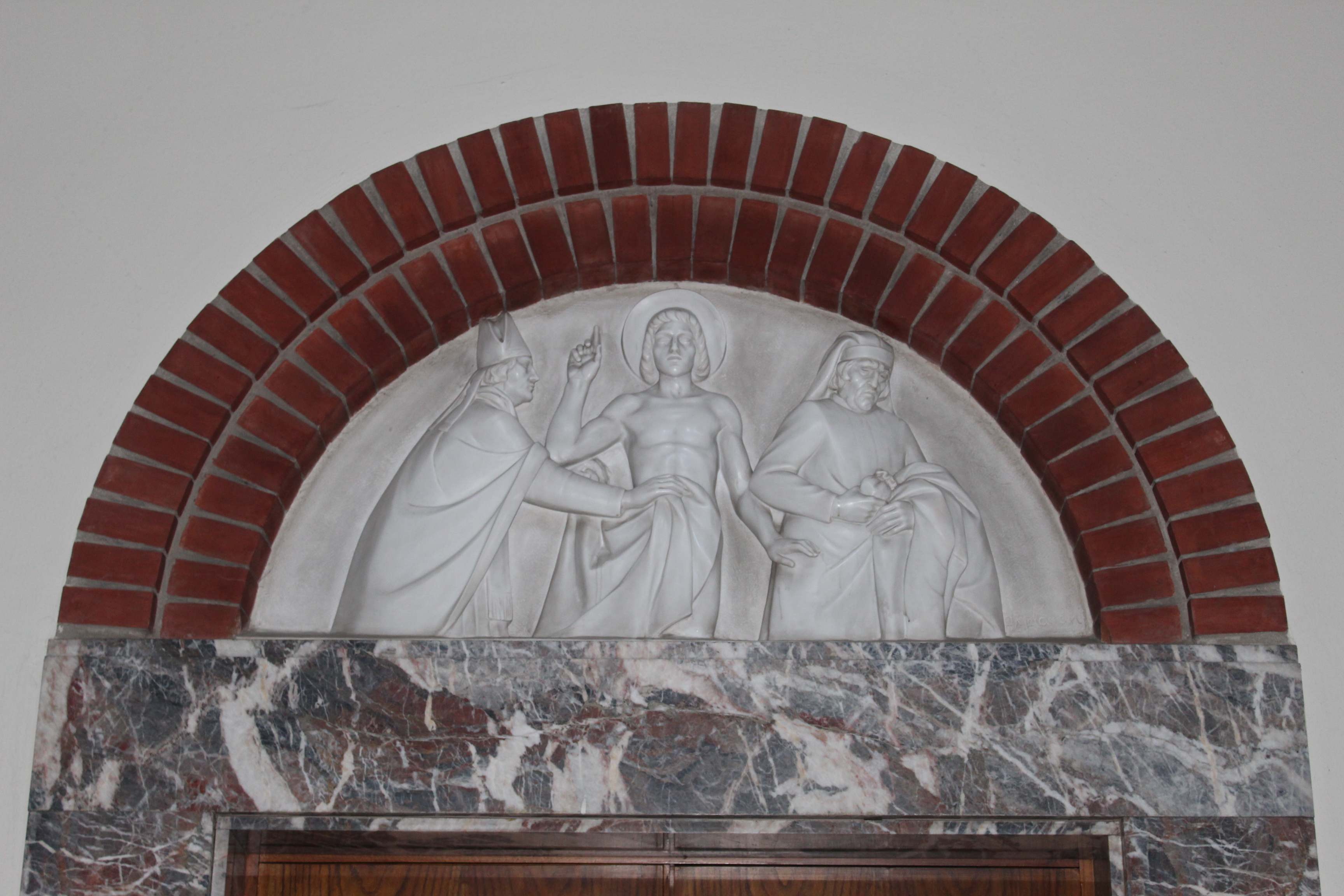 - NOTIZIE STORICO CRITICHE Le lunette si trovano sulle quattro porte che immettono nella zona della chiesa destinata ai fedeli. Sovrastano un'architrave in marmo e sono contornate da una doppia cornice di mattoni a vista. Sono opera dello scultore Pietro Melandri (originario di Bagnacavallo, da non confondere pertantno con l'omonimo ceramista e decoratore faentino, vissuto nello stesso periodo), secondo quanto riporta la tradizione orale. I quattro rilievi furono eseguiti intorno al 1950, quando la chiesa, danneggiata dai bombardamenti del secondo conflitto mondiale, venne riconsacrata a seguito dei restauri e della collocazione di nuove opere d'arte di mano di vari artisti contemporanei (la Via Crucis, le tele con storie di Santa Chiara). Nell'opuscolo edito per l'occasione, nel quale queste ultime sono menzionate, non si fa riferimento alle lunette, ma vi compare un articolo dello stesso Melandri, il quale, in relazione alle formelle della Via Crucis, parla di "opere (...) degne tutte della gloriosa tradizione francescana, dove si è sempre visto e sempre si vedrà S. Francesco dare ispirazione all'arte, e l'arte nelle sue forme più nobili, onorare S. Francesco". Nello stesso articolo lo scultore difende le prerogative di un'arte sacra intonata alla "disciplina seguita dai maestri del passato", secondo un ideale di rigore e sintesi illustrativa di cui egli stesso si fa portavoce nella sua opera destinata alla chiesa faentina. Con l'eccezione della rinuncia ai beni paterni i soggetti commissionati all'artista attingono a episodi e fonti tra i meno consueti dell'agiografia francescana