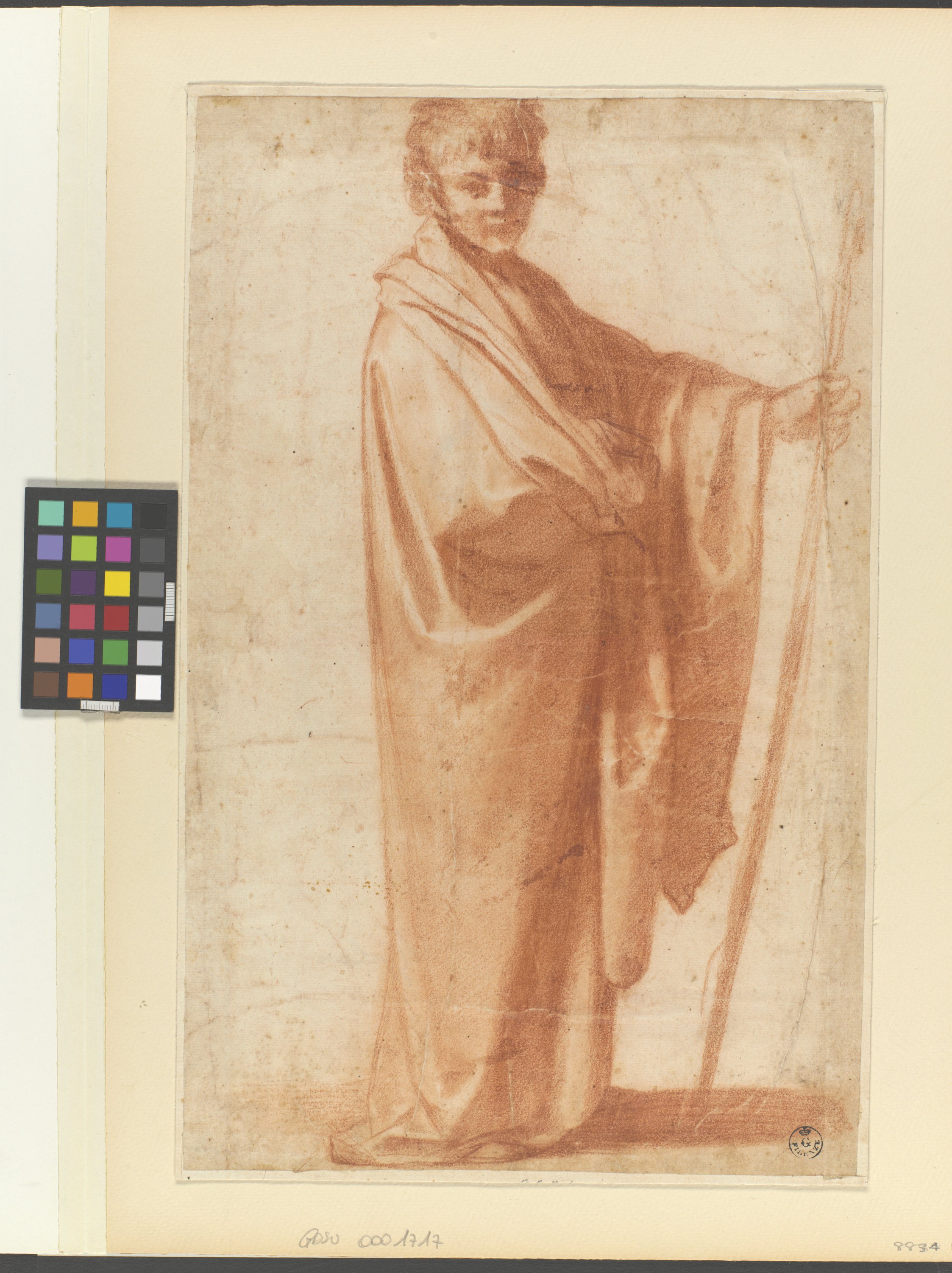 figura maschile ammantata in piedi con bastone (disegno) di Cardi Ludovico detto Cigoli (fine/ inizio XVI/ XVII)