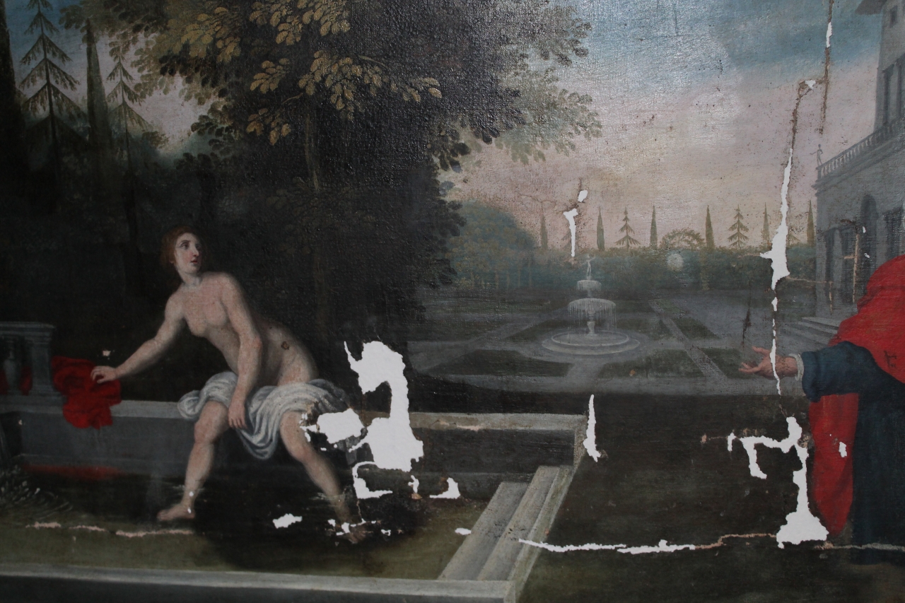 - NOTIZIE STORICO CRITICHE Il dipinto, inventariato come opera di ignoto, è opera discreta situabileper il taglio della scena e la vegetazione nordica, in ambiente fiammingo agli inizi del seicento